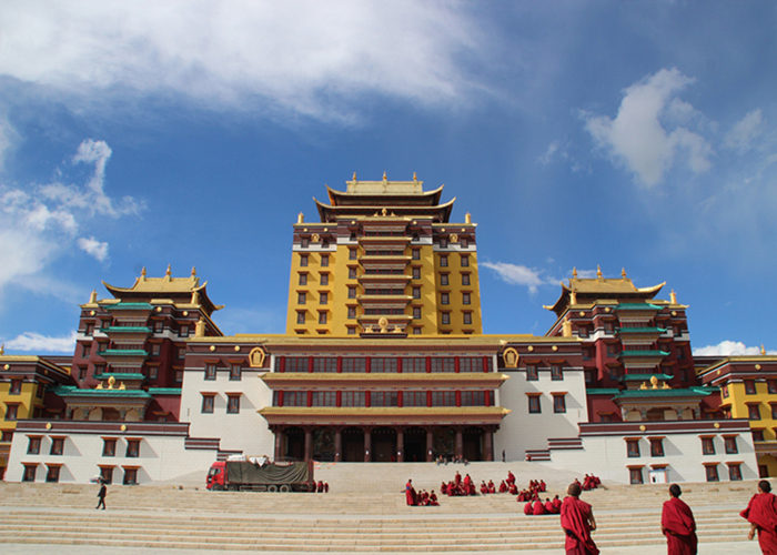 然而阿坝又是一片充满神秘的藏传佛教文化的地方,教派齐全,寺院僧侣众多,这里有藏传佛教格鲁派、宁玛派、萨迦派、觉囊派和苯波派寺院42座。其中最为代表的寺院是:各莫寺又名慧圆寺,全称吉祥讲修兴隆院,它位于阿坝州阿坝县城西北部各莫乡唐麦村,距县城13公里,占地18000平方米,是一座显密兼修的格便派别寺院。为阿坝州三大格鲁派寺院之一,为黄教六大寺之拉卜楞寺的分寺这一。建于乾隆56年(1790年),由拉卜楞寺大赤巴贡却德庆按第二世嘉木祥大活佛之意创建的。原名法相寺,至今200余年。各莫寺佛塔映日,和即将竣工的法喜苑庙宇生辉,对于各莫寺来说法喜苑的建设是一项藏汉寺庙的浩大工程,也是其很少看到藏传佛教有10层以上的建筑。