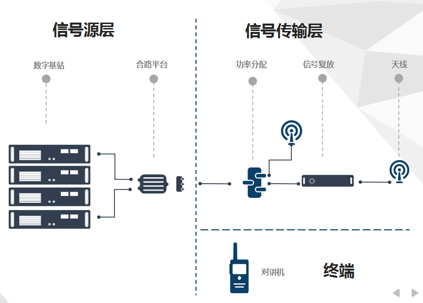 无线对讲系统的组成:信号源(基站中心)、室内天馈分布系统、对讲机等三部分组成。