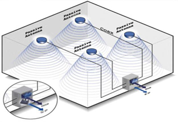 2. 在工厂中采用室内全向天线+射频同轴电缆的覆盖方式,使作为网络末梢的室内天线做覆盖的范围环环相扣,由多个信号覆盖小区组成一个大的通信网。