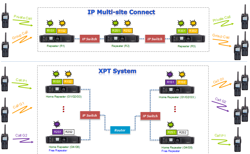 海能达XPT虚拟集群无线对讲系统运行示意图