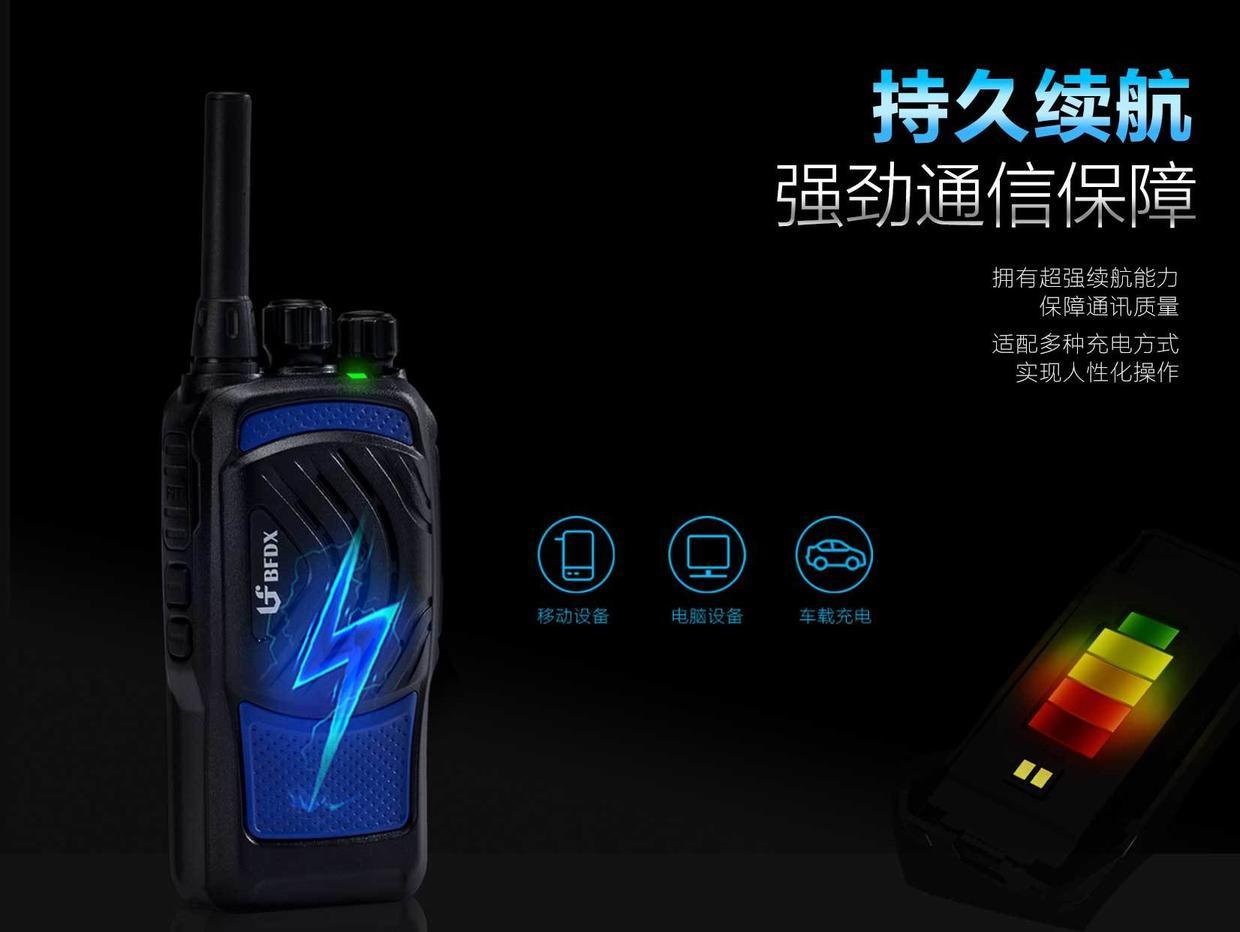 除了为日常通讯提供强劲的电量续航之外,BF-CM389公网对讲机在操作上融入更多人性化设计,具有独立的电量查询按键,方便及时对电量进行查询;与此同时,BF-CM389人性化设计同样体现在USB式充电接口、适配多样的充电方式上,尤其在户外条件下,随时保持充足动力、沟通不掉线。